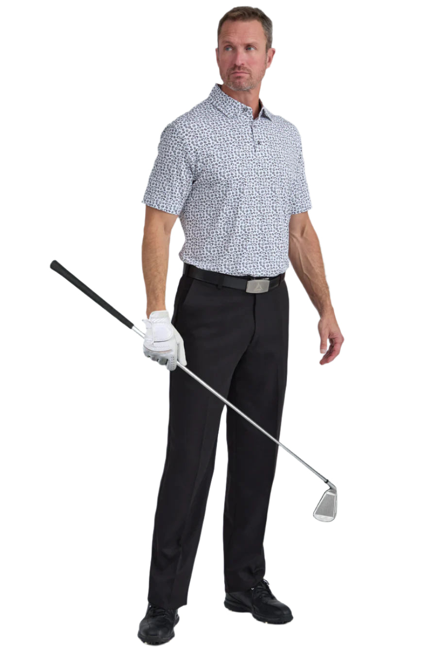 Bermuda's Men’s Joshua polo, in a coffee bean print, is made with their polyester / spandex jersey fabric, which is soft, lightweight, and breathable, making it perfect for on the course, out on the town or in a casual work environment.