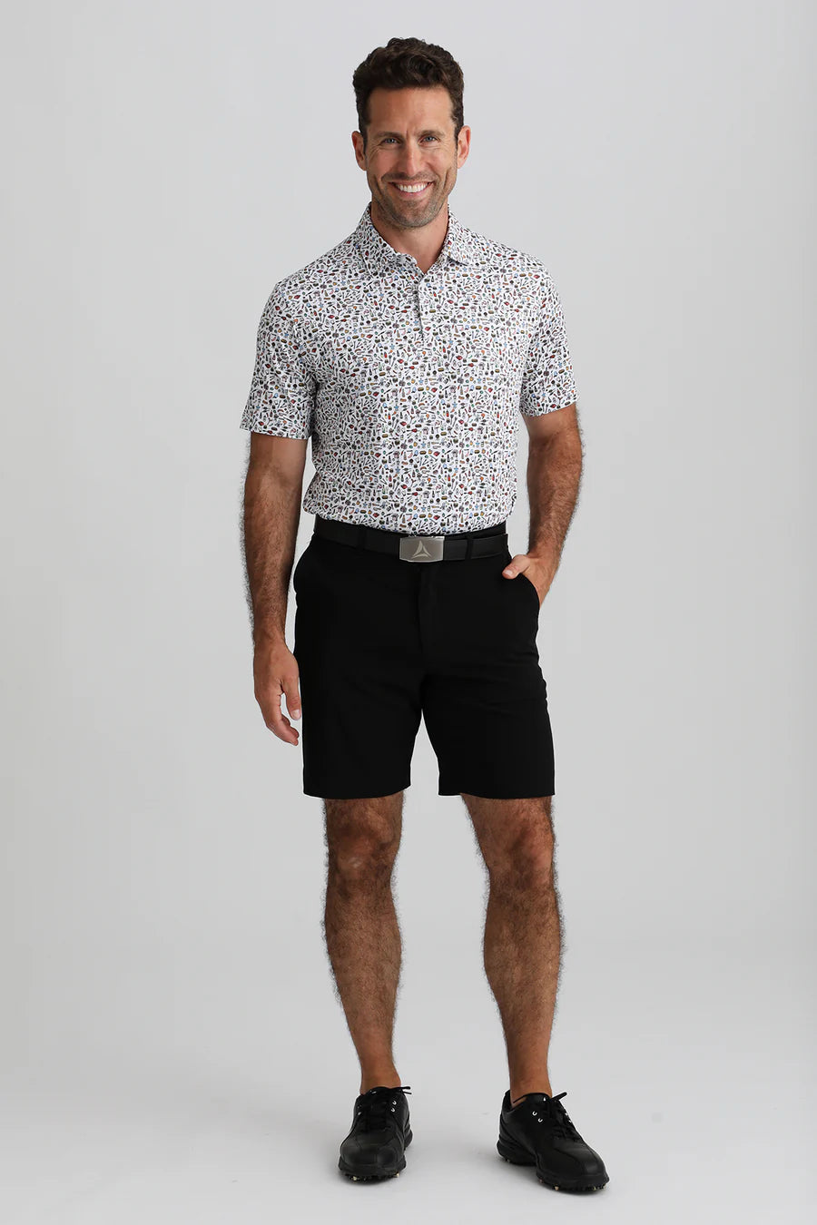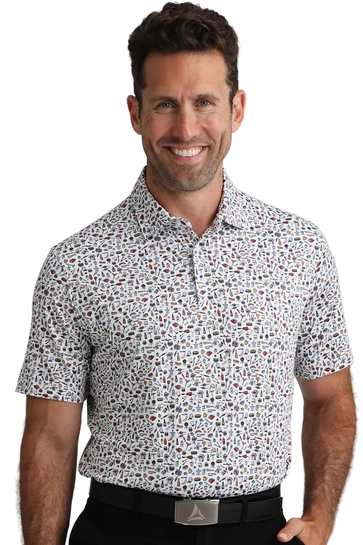 Bermuda’s Men’s McCray polo, in a cookout theme print, is made with their polyester / spandex jersey fabric, which is soft, lightweight, and breathable, making it perfect for on the course, out on the town or in a casual work environment.