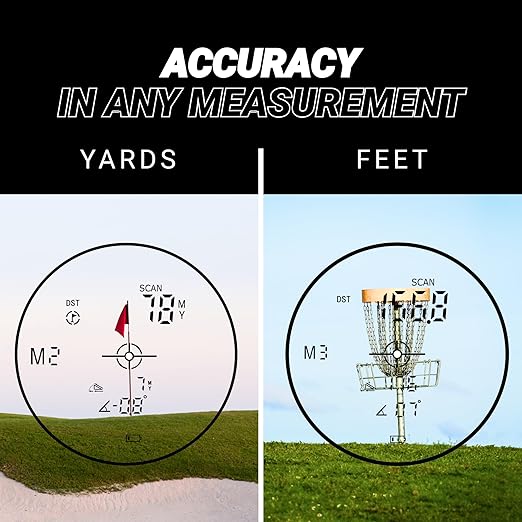 MASTER GOLF WITH DYNAMIC MODES - Elevate your game with their range finder golf. Flag lock mode ensures pinpoint accuracy to the flag. Dynamic scan, or active track, updates distances in real-time. Remarkable precision with an accuracy of ± 1 yard/metre makes this innovation perfect for the golf course.