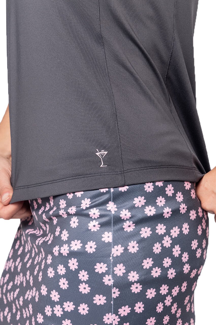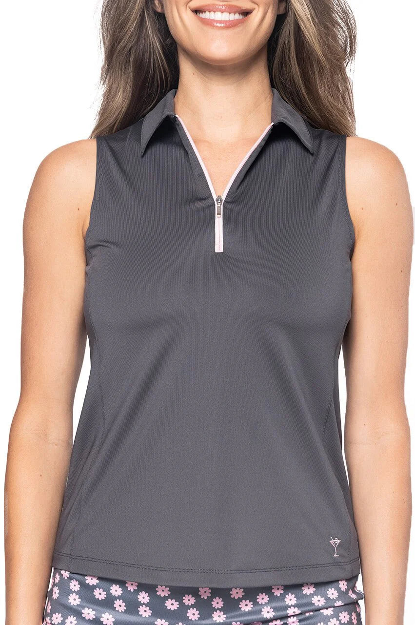 Golftini's best-selling polo in slate with a contrast rose pink zipper. There is a reason this is everyone's favorite top... It is as functional and comfortable as it is stylish! The princess seam details provide a feminine silhouette in addition to the flattering v-neckline placket. This sleeveless polo is guaranteed to become a go-to for warmer days on the course, or an easy layering piece as it gets cooler.
