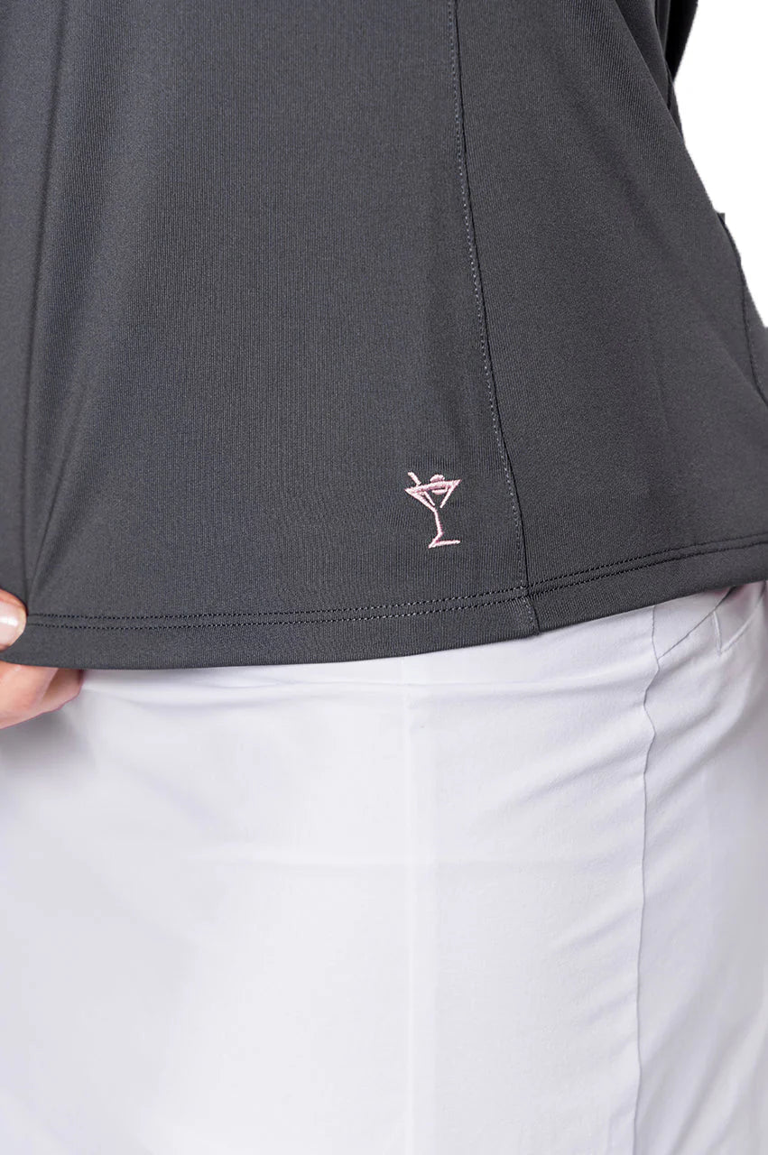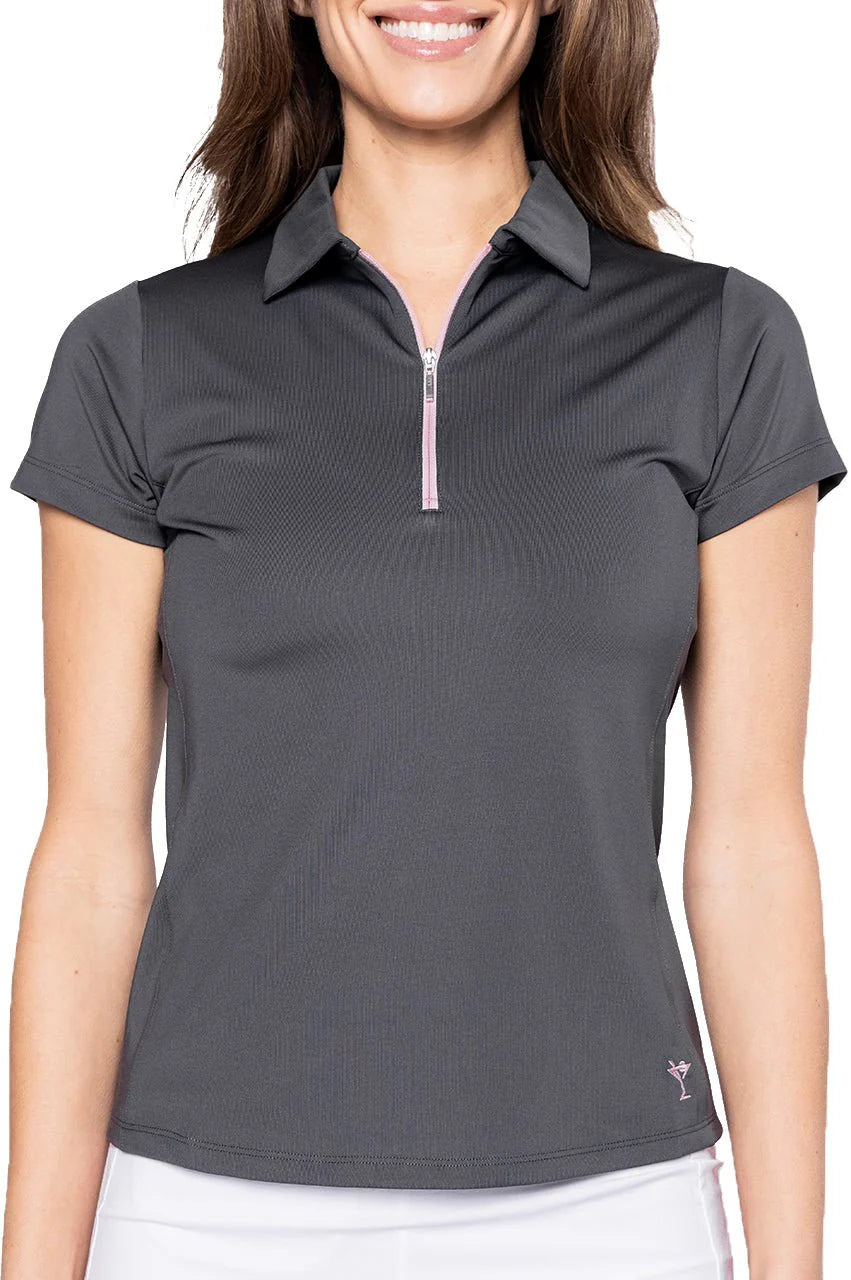 You're bound to love Golftini's newest short sleeve polo with a contrast rose pink zipper.. The princess seam details provide a feminine silhouette in addition to our short sleeves that offer just enough coverage to provide the perfect fit. Its lightweight, stretch material is dyed to match all of our bottoms like always and has built-in sun protection.