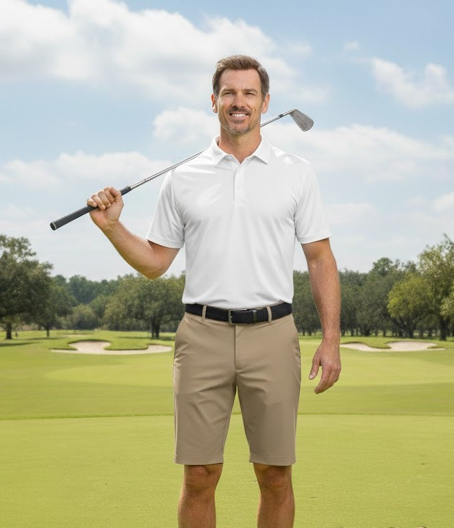 Engineered for the course with Greg Norman's signature PLAY DRY® technology, these shorts deliver exceptional comfort and performance in a refined silhouette. The premium blend of 90% microfiber polyester and 10% spandex woven fabric offers superior 4-way stretch mobility, while the flat front design maintains a clean, tailored appearance.